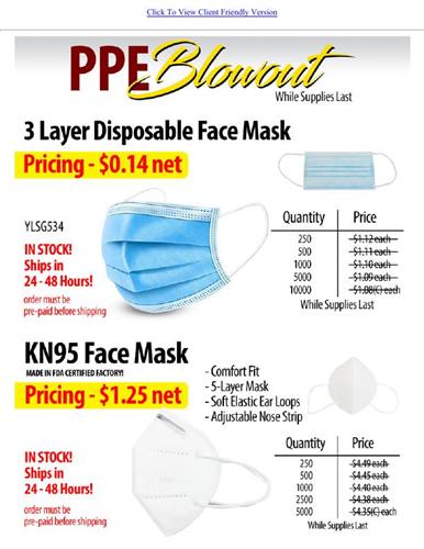 Only $0.14 for 3 layer Disposable masks from YAFA Line